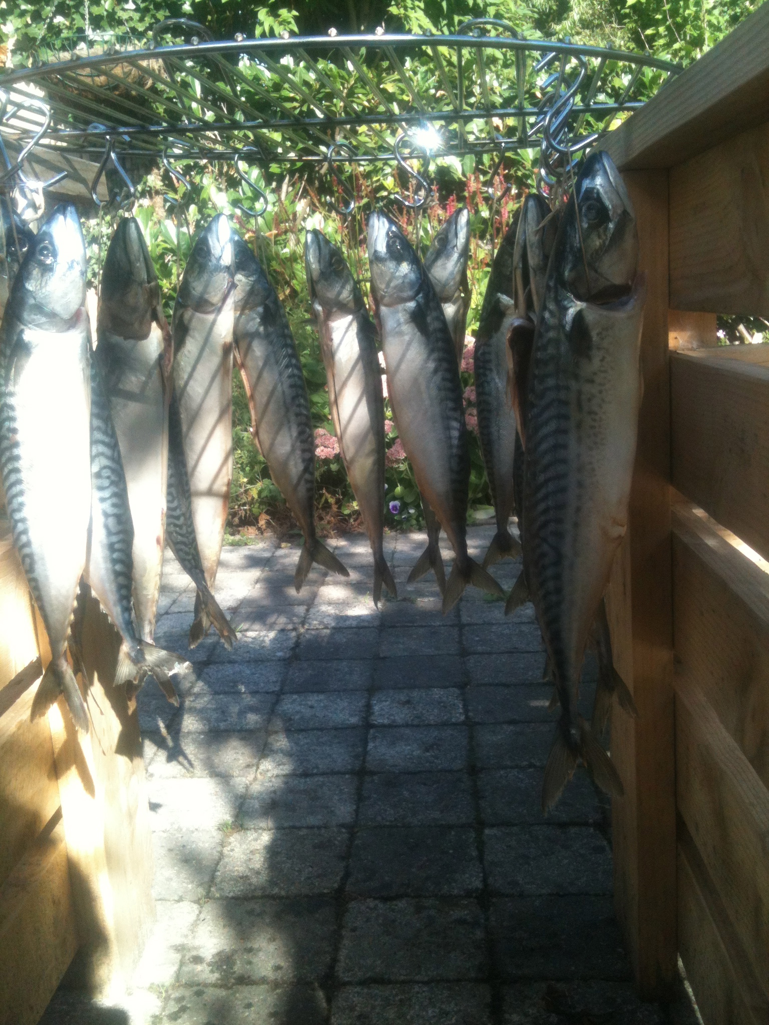 Nadat het voedsel is gerookt gaan we het rond de ton opeten zoals het hoort…….met de vingers. Zo lekker heeft u een makreeltje nog nooit gegeten.